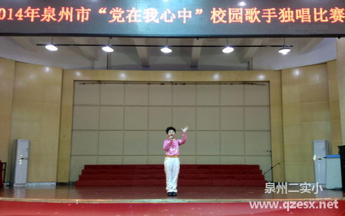 12月20上午,2014年泉州市“党在我心中”校园歌手独唱比赛小学组比赛在东海湾实验学校举行。来自全市各个赛区选送39名小歌手欢聚一堂,掀起儿歌欢唱的热潮,同台竞唱新儿歌,在东海之滨留下了他们难忘的记忆!这次的比赛堪称演唱会,各位选手的精彩演唱此起彼伏,有特色有魅力的演唱不绝于耳。我校五年一班的柯淳同学以圆润清澈的嗓音、个跌宕起伏的情感演绎的《星星海》获得全场最高分。 我校一贯注重校园艺术文化的建设,开展形式多样的歌唱活动,调动学生学习音乐的兴趣,同时也培养了一批小小歌唱家,他们不断在市级以上的各项唱歌赛事中喜获佳绩。