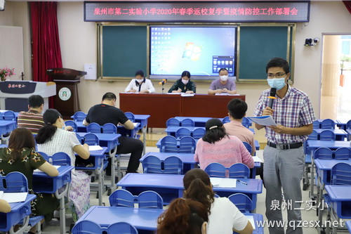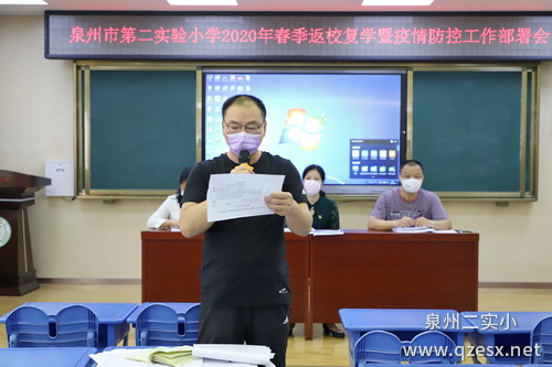 会上,对照《关于做好泉州市2020年春季学期三到六年级开学工作的通知》及《泉州市中小学(中职学校)2020年春季学期开学准备工作评估导则》,杜耿星、陈华珠两位副校长和各部门负责人分别对六年级复学工作作出了具体安排部署,从错峰上下学、晨午检、教学安排、课间活动等复学后学生的一日常规工作责任到人,职责清晰。
