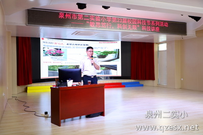 一件件高科技作品,让观摩的孩子们跃跃欲试,时而仔细观察,时而上前体验,现场一片惊叹不已。学校还特邀泉州师范学院教授、泉州师范学院第二附属小学科技校长黄晓冬老师为同学们开设了专题讲座《敏思笃行 科创无限》。精彩的内容,同学们听得聚精会神,认真地做好笔记。